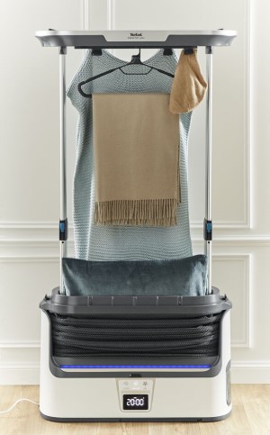 Introducing Care for You: Tefal’s first all-in-one automatic garment care system. In no time at all, this revolutionary new product smooths, refreshes and dries your clothes, all using the natural power of steam. It’s perfect for freshening up business suits or other hard-to-wash items. That’ll save on dry-cleaning! It’s quiet, too, running at a decibel level well below everyday conversation. And, unlike other clothing care systems available, Care for You features four wheels and a nifty, space-saving retractable design, allowing for easy and discreet storage anywhere in your home. Simply hang up to three items of clothing inside, choose ‘steam’ on the intuitive remote control and, in as little as 10 minutes (just enough time to take a shower), you’ll have crease-free clothes. It’s that easy. Got a bit more time? Leave clothes in for up to 30 minutes to tackle tougher creases. Meanwhile, the 40-minute ‘sanitise’ cycle is great for freshening up any outfit after a day’s wear. The natural power of steam kills 99.99% of viruses, bacteria, and germs* while banishing lingering odours, all without chemicals. No need to risk fragile fabrics in the dryer: just hang them up, select ‘dry’ and allow a flow of cool air to dry them gently, avoiding any damage. It’s quick, drying clothes 5 times faster†, and safe for all kinds of home textiles – from cashmere to cuddly toys. Clever Blue Technology maintains the perfect temperature and humidity level, ensuring great results every time. Care for You will even tell you when your clothes are ready and turn itself off when it’s done. *External laboratory test on cotton, 40-minute sanitise cycle †Compared to natural drying in ambient temperatureSteam cycle for crease-free clothes in as little as 10 minutes